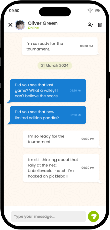 Match with other pickleball enthusiasts based on skill level, location, or availability. Schedule games, create groups, and grow your pickleball circle.